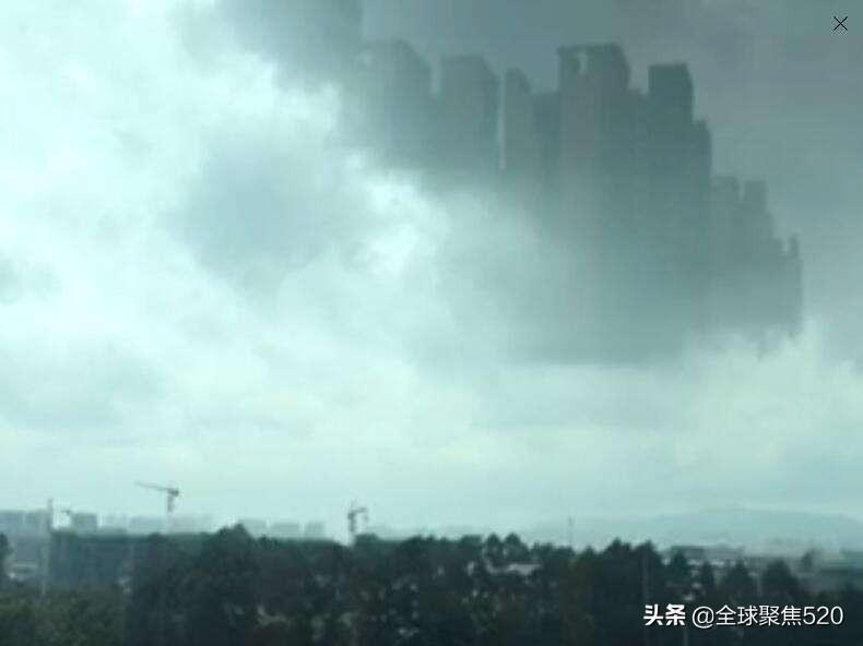 2012年5月2日下午,一阵大雨过后,在广东汕头中环大厦西北方向天空出现连绵起伏的山脉,而平时在该角度望去是看不到山的,所以应是海市蜃楼现象。