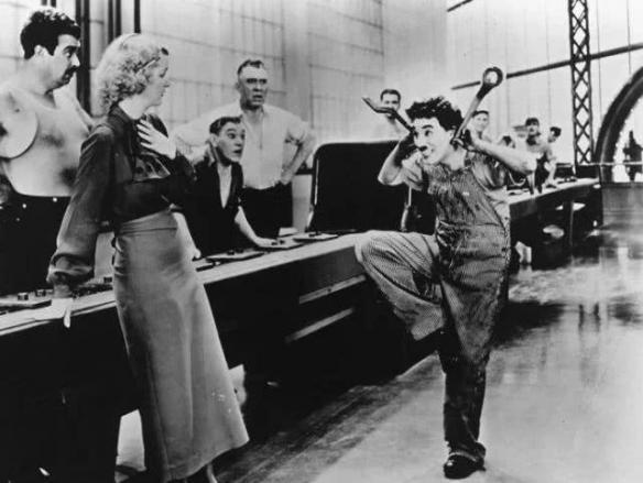 重复繁重的工作压得他喘不过气,他把人们的鼻子当成螺丝钉来拧,卷入流水线机器的皮带里,令人苦笑不得。查理尽管贫穷,但却很善良。他在路上搭救了流浪女,和她一起生活,家里破烂却又温馨。每次身无分文的查理为了找到吃的,都会故意犯事,以便进入监牢。光景一时间有了好转,流浪女成了歌舞红星,然而好景太短暂了。