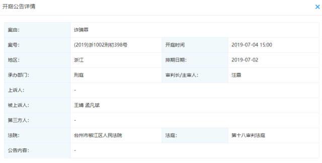 且有网友在浙江法院公开网查询,查到了孟凡斌、王婧(妻子)的案件,而且显示是7月4号开庭。不过或由于相关视频流出,社会反响较大,该案件疑似暂停开庭,后延一段时日。