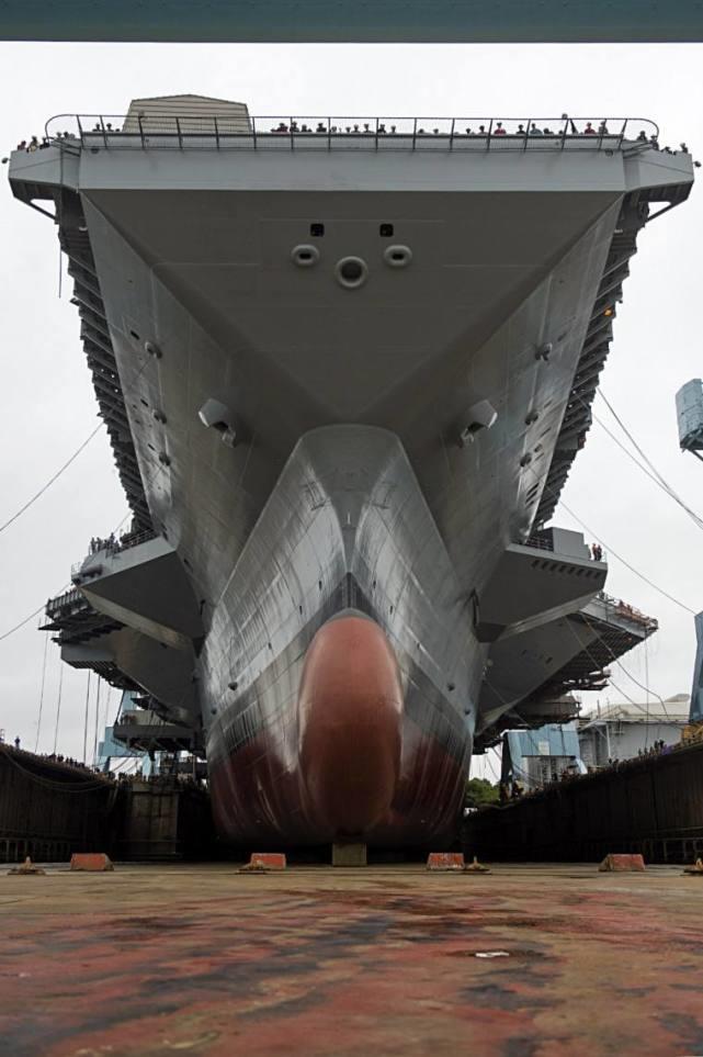 福特号在下水后移往纽波特纽斯造船厂三号码头,以便进行为期28个月的后续设备安装与测试工程。