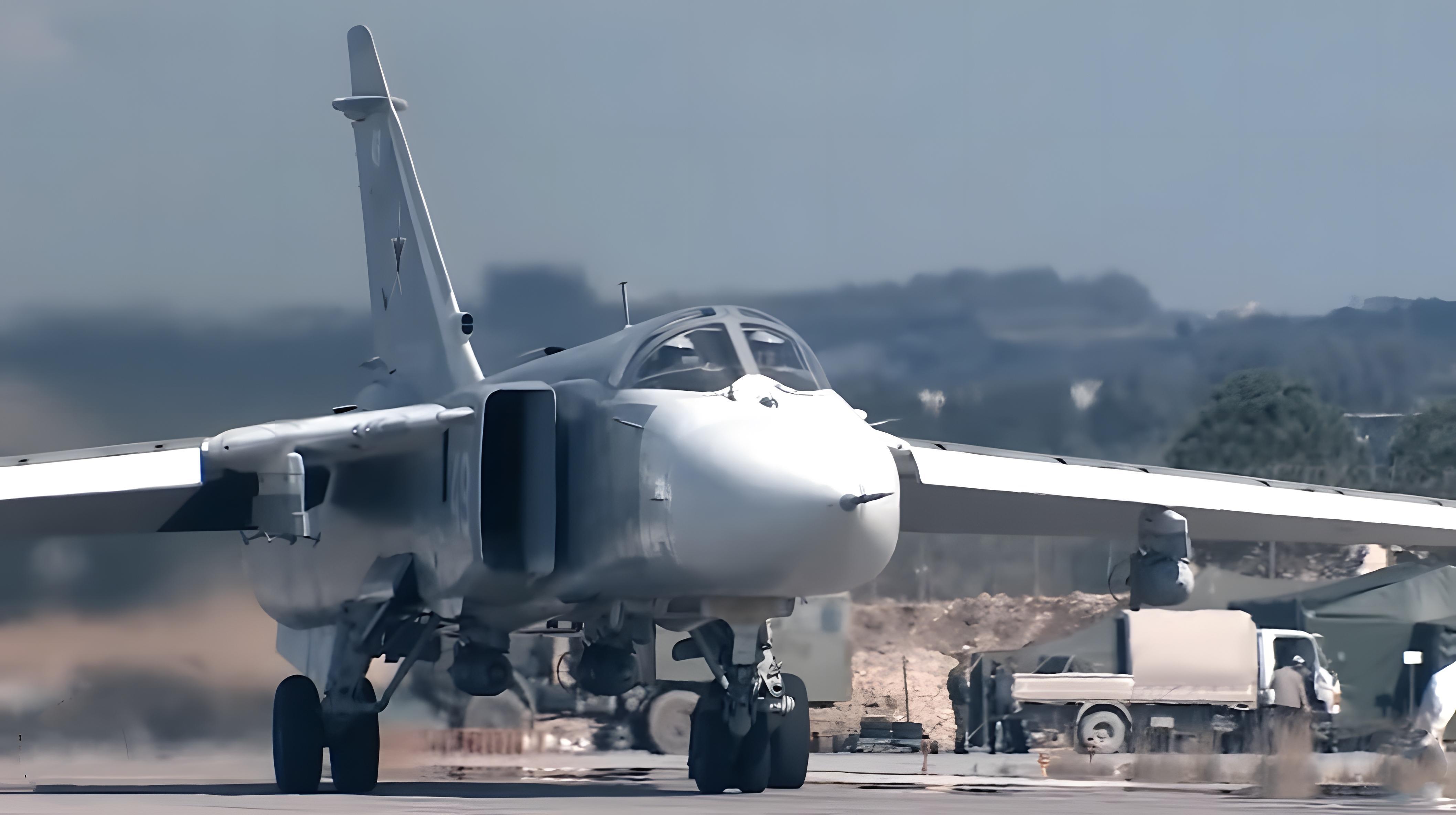 苏-24是一款是前苏联苏霍伊设计局设计的双座双发动机变后掠翼设计之低高度长程多用途攻击机,主要用以取代老旧的Yak-28,北约代号击剑手。它长22.59米,翼展17.6米,采用AL-21F-G涡喷发动机,最高时速1654公里/小时。除了携带传统的空对地飞弹等武装进行攻击任务外,苏-24也可携带小型战术核武器,进行纵深打击。苏-24总制造数量逾千架,外销阿尔及利亚、苏丹、利比亚和叙利亚,苏-24频繁活跃在苏俄及其引进国大小军事事件中,由于叙利亚的引进和俄罗斯参与叙利亚内战,近几年作为主力打击飞机的苏-24更加频繁的进入人们的视线。