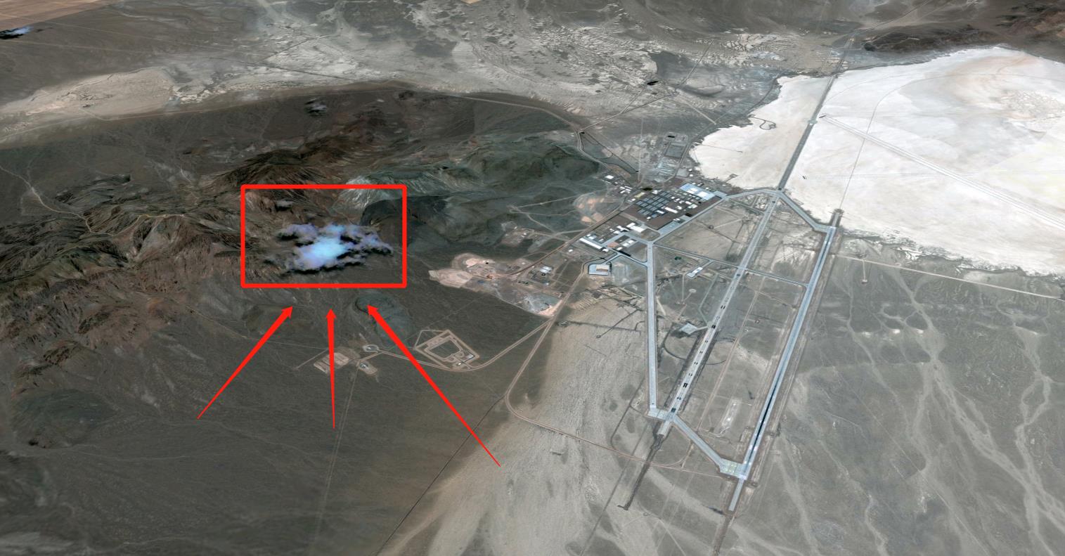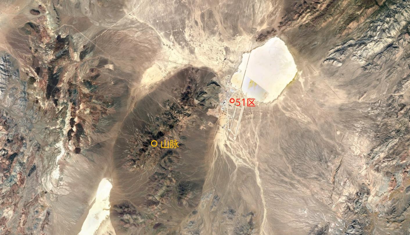 因为这片场地和核心建筑群之间隔着一条庞大的山脉,这条山脉可以阻挡核爆炸带来的威胁,在基地核心建筑的南侧,是Papoose山脉,这条山脉就是传出UFO出没的地区,当然了,到现在为止还没有已经证实的拍摄到所谓的外星飞船的痕迹,在是Papoose山脉上还有一个奇怪的景观。