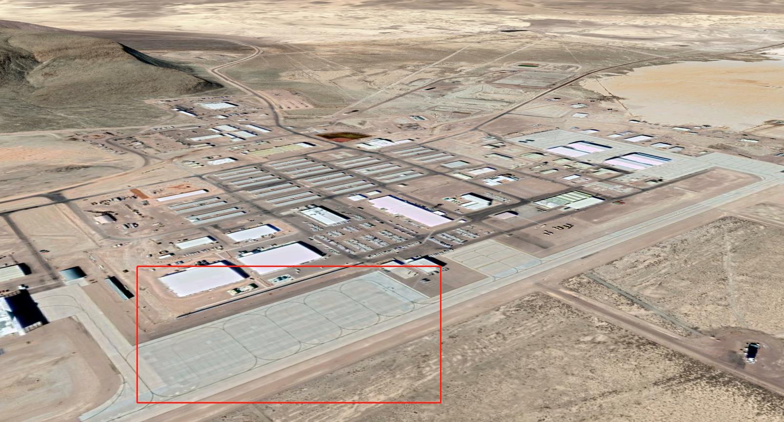 从卫星图来看,最引人注意的就是这个不规则多边形的机场跑道,中间这条笔直的跑道长度达到了7.4公里,这条跑道是51区最明显的一个标志,要知道,不同飞机对于机场跑道的需求也是不同的,像是一般的机场跑道,标准也仅仅是1800米,而这条长达7.4公里的飞机跑道到底是支持什么等级的机型,咱们就不得而知。