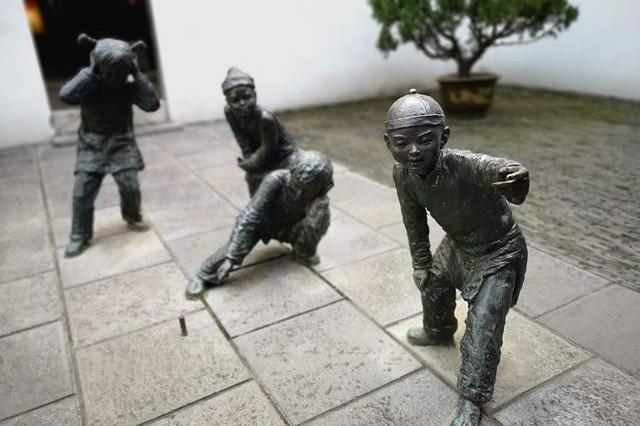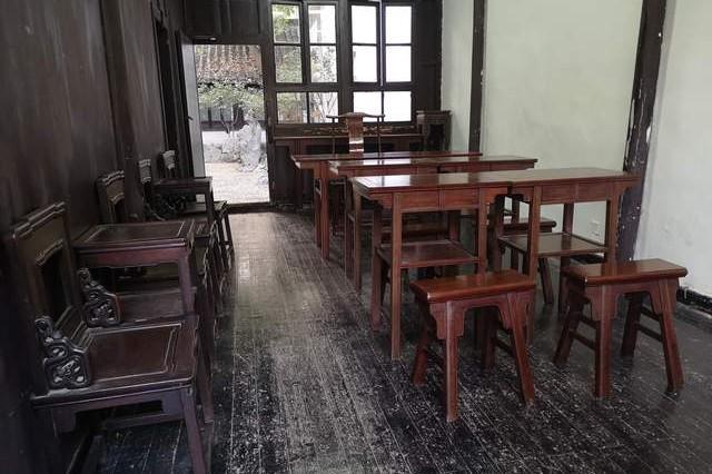 甘熙家的家塾,格局清晰,布置整齐,正面当首的应该是先生的“宝座”,比常用的方桌高出五六寸。在它的前面,摆放着一张书桌,上有文房四宝和戒尺,在前方对称放置着课桌和凳子。我仿佛听到了孩子们朗朗的读书声。