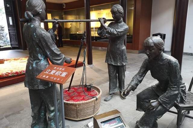 迎亲花轿、立夏称重、小孩抓周三个项目,集中展示了南京城市的育儿、婚嫁习俗,可以现场体验。展厅还有从各处收集的长命锁、红围兜等琳琅满目,真可谓“五十年苦寻觅饱览壶天锦绣,二百件珠玑堪称陶苑精华”。