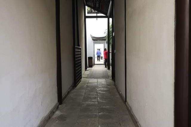狭长的透着神秘的白粉墙通道,据说当年是佣人走的地方。