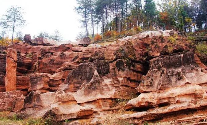 中华龙山:中华龙山是可以和兵马俑媲美的21世纪人类又一个伟大发现,它形成于4.5亿年前的奥陶纪,整个山体岩石呈红褐色,山势纵横,像一条条巨龙盘踞于此,山体表面均匀布满酷似龙鳞的花纹,因此被称为"中华龙山"。亿万年前的"中华震旦角石"等海洋古生物化石随处可见。众多的地质学专家多次考察后说:这种奇特的地质现象全国乃至世界都实属罕见,有极高的科考和观赏价值,究竟是如何形成的,还有待深入研究。