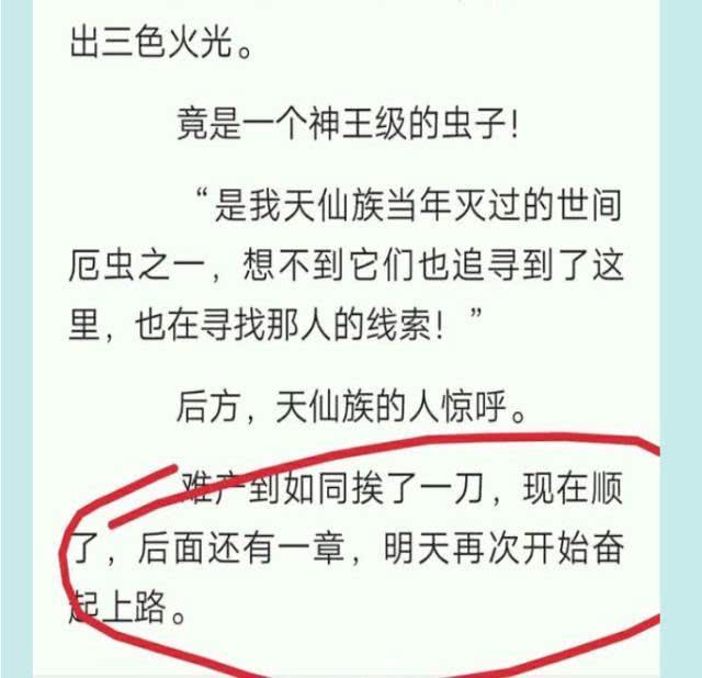第三个原因:辰东:怎么办?我又想说我要开始速度更新了,暗示读者我又觉得我行了提速更新。这个时候大家就要知道,其实作者辰东马上就要断更了,这是常理相信很多看过《圣墟》更新的读者都是知道辰东的写作风格了,每一次说要加速,其实就是暗示了“断更”的意思,大家心里面明白就好。