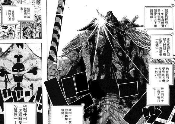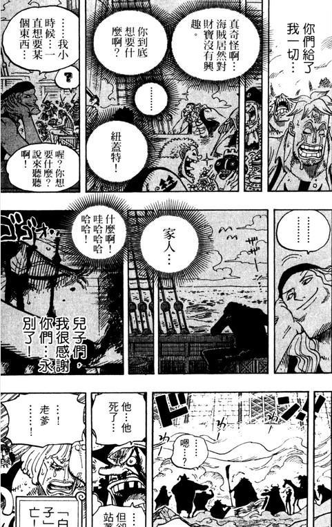 白胡子寡不敌众,临死前回忆起与罗杰一起喝酒的时光,用尽最后一丝力气,喊出“ONE PIECE是真实存在的”,最后以站立的姿态死去。