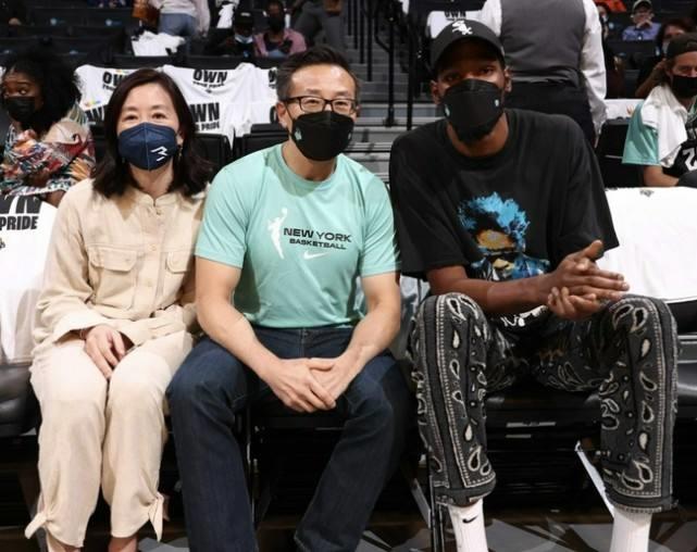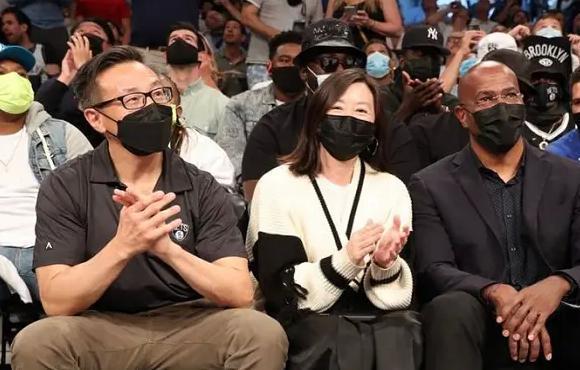 当天老板蔡崇信身穿短袖的西裤,看起来非常干练,而蔡崇信的妻子吴明华则身穿毛衣,整个人看起来婉约大方,气质上非常出众。其实这也不是蔡崇信第一次赶到现场为球队加油助威了,很早的时候蔡崇信和妻子吴明华以及篮网的当家球星杜兰特一起到WNBA纽约自由人队现场看球(蔡崇信同样是纽约自由人队的老板)。