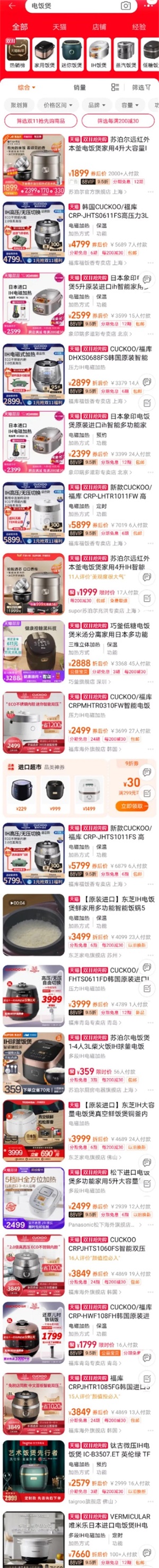 网购电饭煲,平均3400元一个,最贵的7660元一个,来自日本。