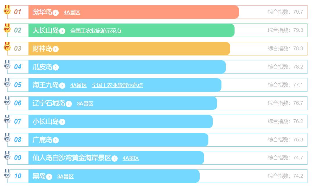 辽宁省最美海岛,位列第一的是觉华岛,位列第二的是大长山岛,位列第三的是财神岛。