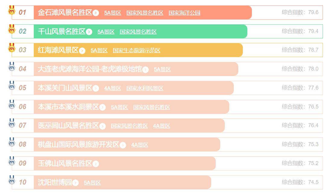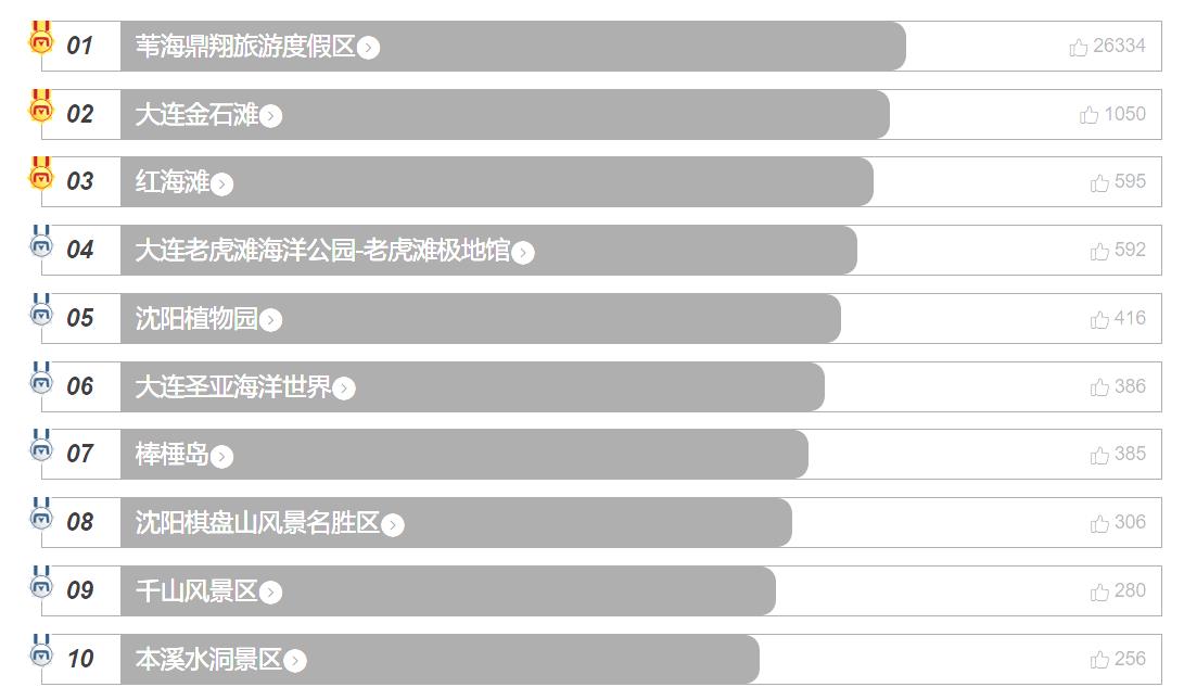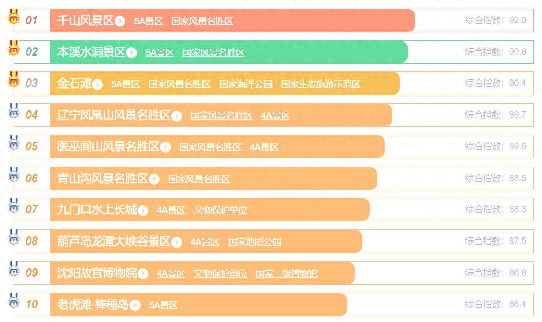 辽宁省十大最美景点名列第一的是金石滩风景名胜区,名列第二的是千山风景名胜区,名列第三的是红海滩风景区。