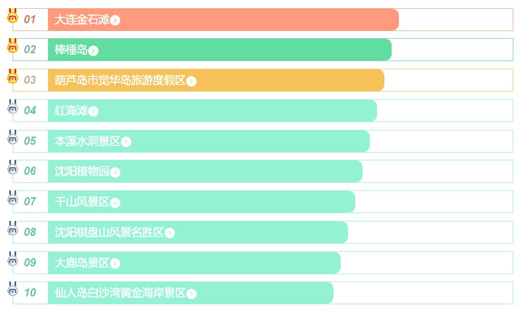 辽宁省自然景观位列第一的是大连金石滩,位列第二的是棒棰岛,位列第三的是葫芦岛市觉华岛旅游度假区。