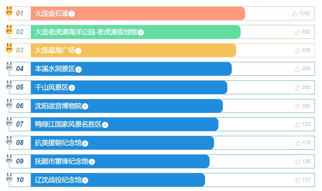 辽宁省最值得去的景点排名第一的市大连金石滩,排名第二的市大连老虎滩,排名第三的市大连星海广场。