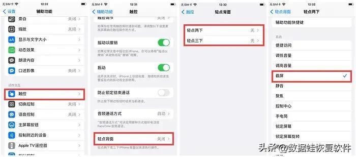第2步:选择【轻点两下】或者【轻点三下】。以【轻点两下】为例,我们可以下滑列表,选择【截屏】。