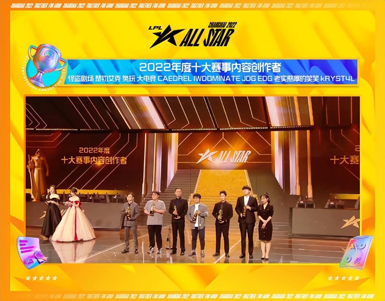 2022年度十大赛事内容创作者:怪盗剧场、楚钧艾克、大电竞、兔玩、Caedrel、IWDominate、JDG、EDG、老实憨厚的笑笑、kRYST4L