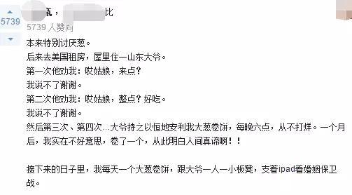 曾经有个山东的前男友,出去吃饭点了一盘葱爆羊肉,我全程吃羊肉,他全程吃葱……