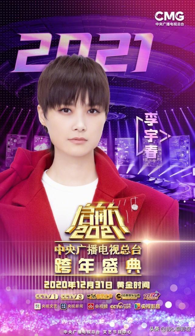 央视跨年阵容:李宇春、周笔畅、杨幂、王源、毛不易、周深、吴亦凡、张含韵、欧阳娜娜、黄景瑜、硬糖少女303、孙楠、李云迪、金晨、吴克群、郁可唯、阿云嘎、关晓彤、王祖蓝、包贝尔、包文婧、胡杏儿、凤凰传奇等。