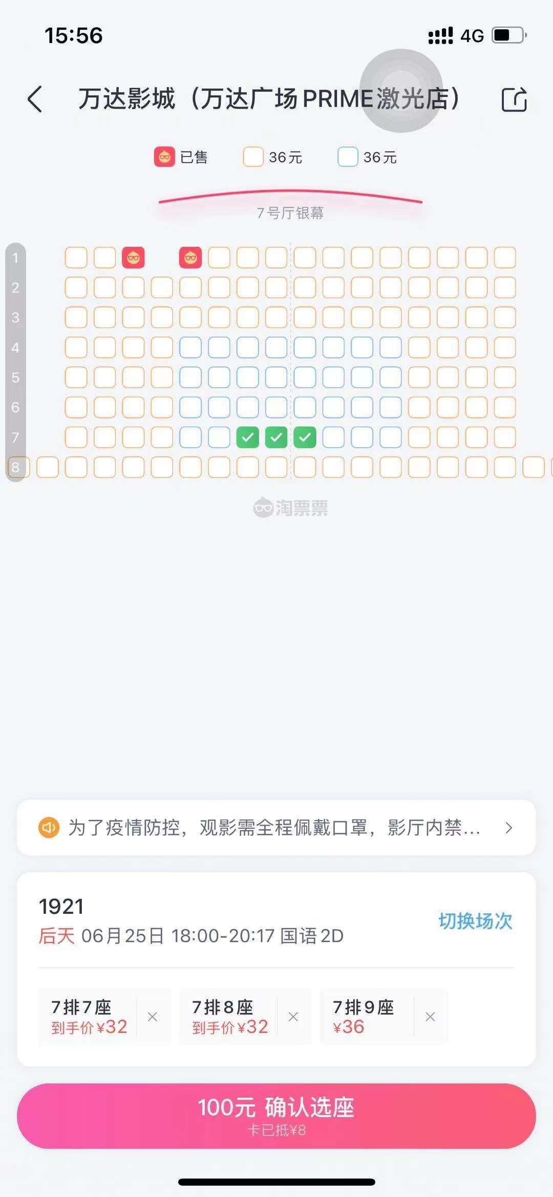 回到正题,咱们还是看看在哪里买票便宜,以万达某影城和电影《1921》为例: