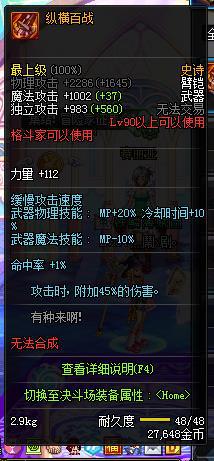 提升比荒古稳定一些,45白字无冲突,白外也非常的霸气,还多加200独立,相信会有不少玩家喜欢这把武器。