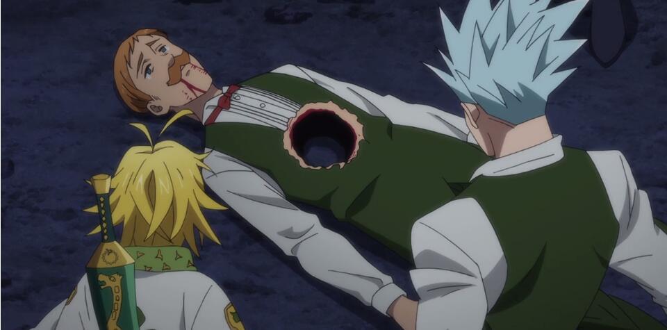 上集结尾梅利奥达斯和班合力打破魔神族创造的会自行修复的迷宫,终于与伊丽莎白一行会和,至此,七大罪全员除玛琳还未恢复外,全员集结!