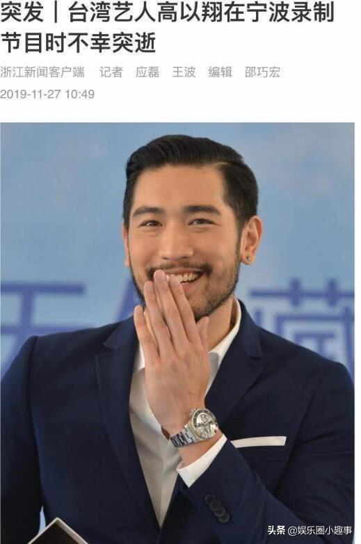 2019年11月27日,台湾著名男星高以翔在录制浙江卫视《追我吧》综艺节目不幸猝死。即使在高以翔逝世之后,在2019年高以翔仍然再度入围“全球百大最美面孔”排行榜,虽然这次高以翔他的排名没有提升,还降到了第53位,而此前高以翔已经连续7年荣登该排行榜。