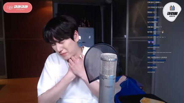 圭贤表示染疫当时,喉咙痛到无法睡觉。(图/翻摄自YouTube/규티비 KYUHYUN)