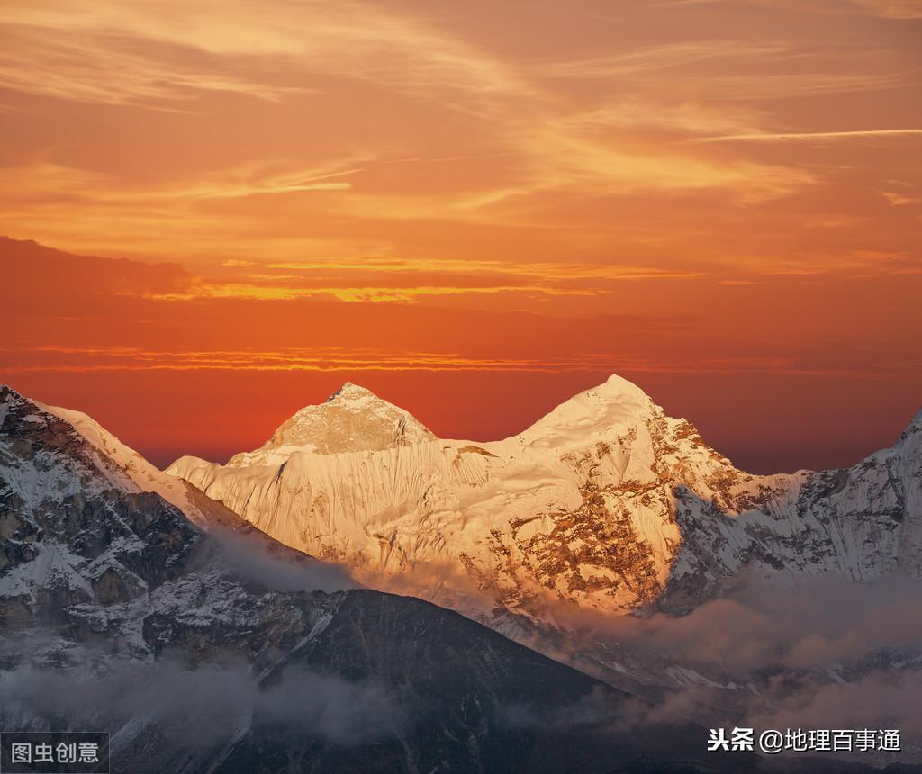 1、珠穆朗玛峰,为喜马拉雅山脉主峰,海拔8,844.43米,交界于中国西藏,尼泊尔
