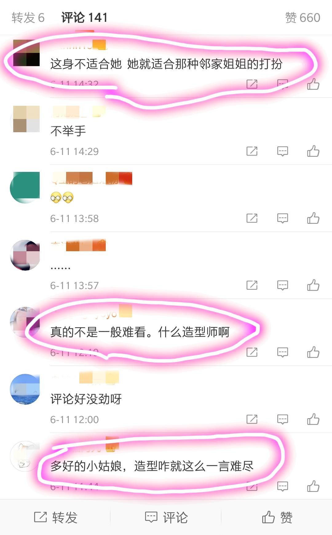 网友们看完新造型之后都表示是关晓彤造型师错,并要求关晓彤换造型师。