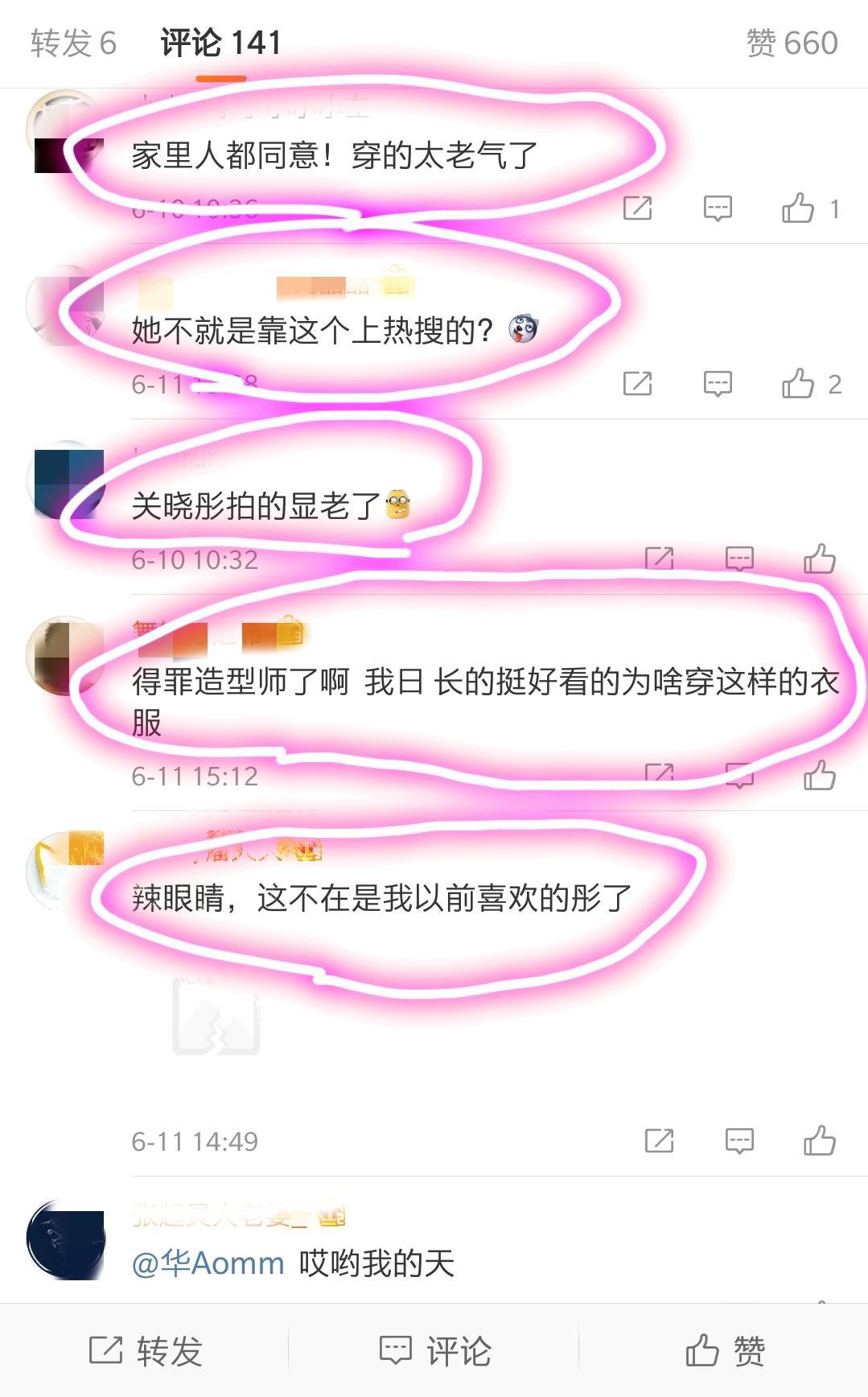 还有网友直接说是关晓彤得罪了造型师了、显老气、辣眼睛等。更有网友表示说:关晓彤不就是靠这样上热搜的?