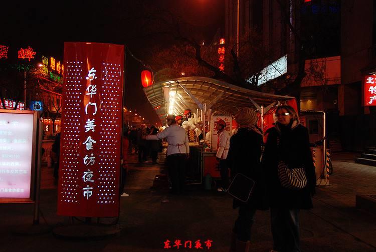 东华门夜市有摊位近200个,集中了全国各地的名优小吃有羊肉串、紫米粥、豆汁等500多种。凉粉、扒糕、莲子粥、酸梅汤、红果酪、杏仁豆腐、烤肉串、烤龙虾、烤鱿鱼、炸蚂蚱、炸蝎子、炸蚕蛹,又多又全又卫生。从新东安市场到东华门大街灯火通明、热闹非凡。