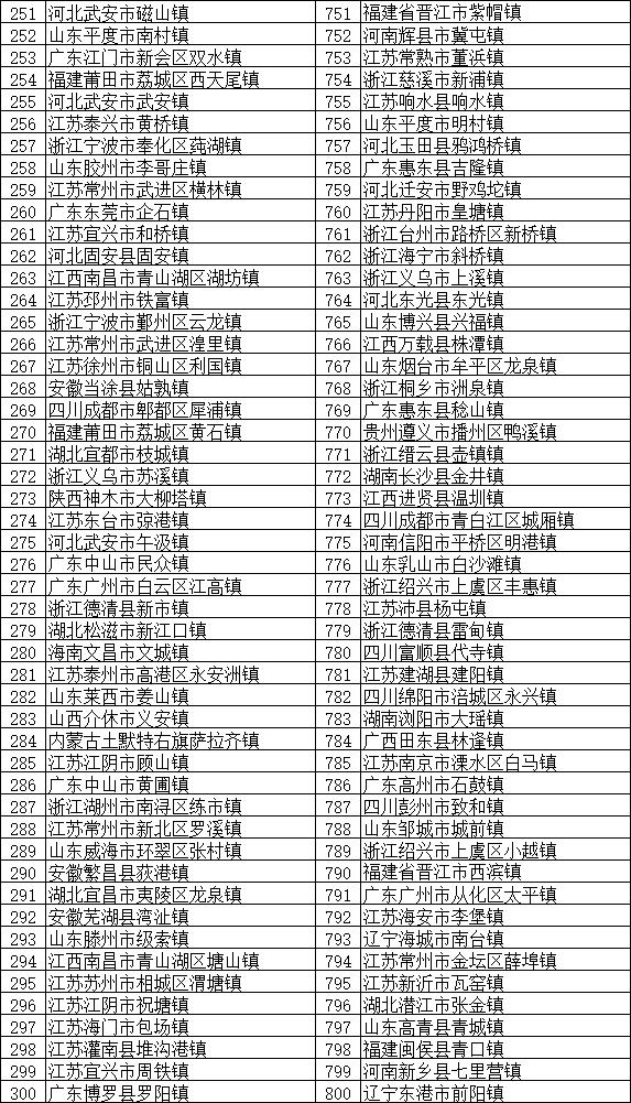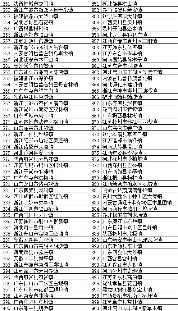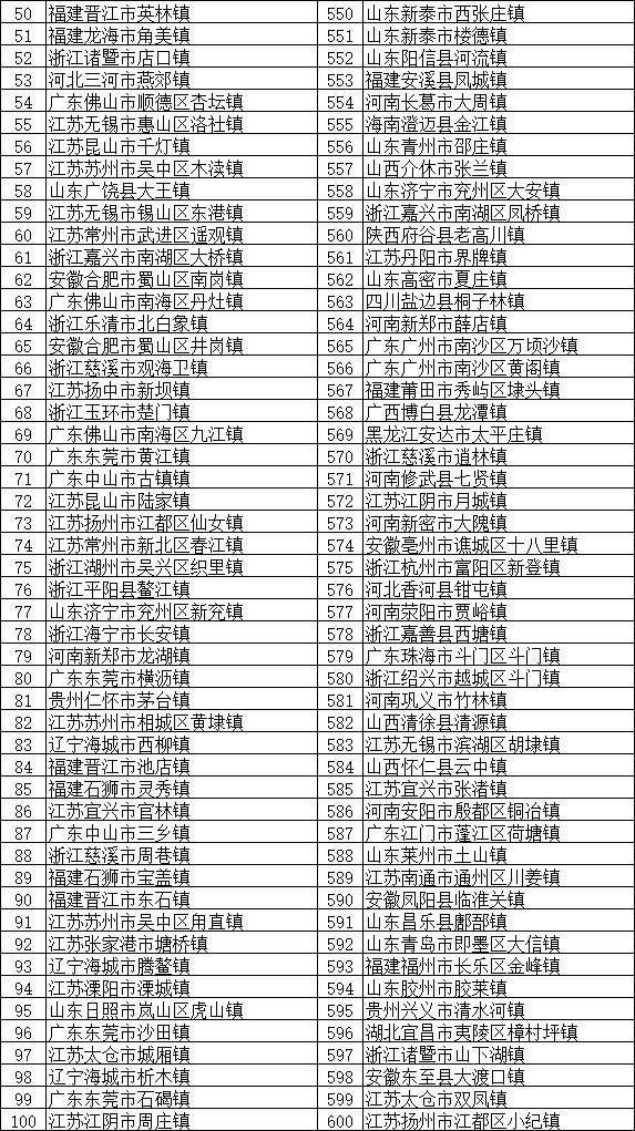 全国将近2万个镇,这100个镇实力最强 分布在全国多个省份