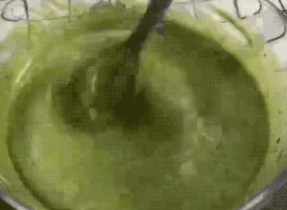 1、拿一个大碗,倒入碗中3颗鸡蛋、30克煲汤、15克抹茶粉、100克低筋面粉、200克牛奶、300克黄油,搅拌均匀。