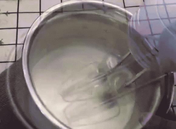 5、在取一个空盆,加入250克淡奶油、20克白糖 打均匀 备用。