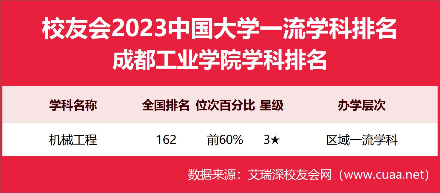 2023成都工业学院最好学科排名,机械工程第162