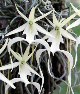 生理特征:鬼兰以其惹眼的白色大花而闻名,就像幽灵飘浮在空中一样。它的花朵形状怪异,令人赞叹。