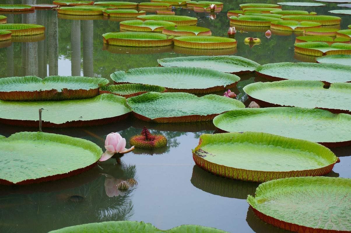 生长环境:王莲原产于南美热带地区,主要分布在巴西、玻利维亚等国。它需要高温、高湿和阳光充足的环境来生长发育。适宜的生长温度为摄氏25~35度,当温度低于20度时,植株会停止生长。