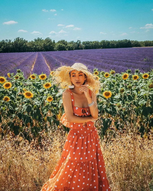 脏橘色波点的方领吊带裙太适合度假了,配上一顶极具夏日风情的草帽,美到没朋友。