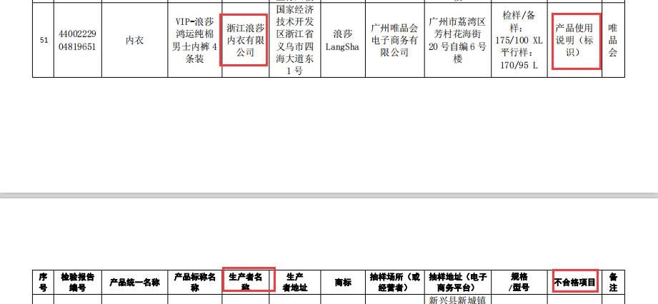 本次抽检不合格的品牌涉及浪莎等多个知名品牌。其中,通告显示,浙江浪莎内衣有限公司生产的内衣“VIP-浪莎鸿运纯棉男士内裤4 条装”不合格,不合格项目为产品使用说明(标 识)。