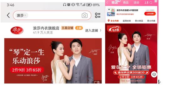 不过,笔者今日发现,上述两名艺人却突然出现在浪莎“七夕”活动的宣传中。