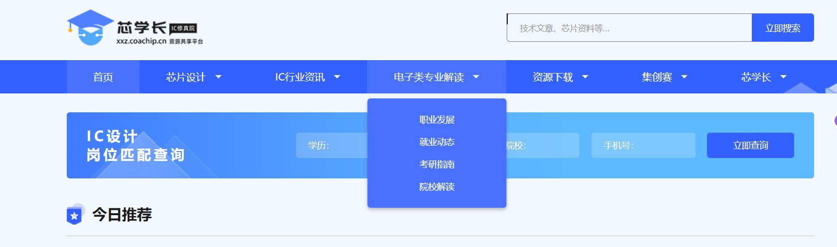 如果大家想要了解芯片设计,可以去芯学长:芯片设计_IC设计_专业的集成电路资讯网站_芯学长网站上,这个网站有IC设计每个岗位的入行介绍,还有电子类专业考研,就业的相关介绍,对于学习集成电路,微电子的学生还是很有帮助的。