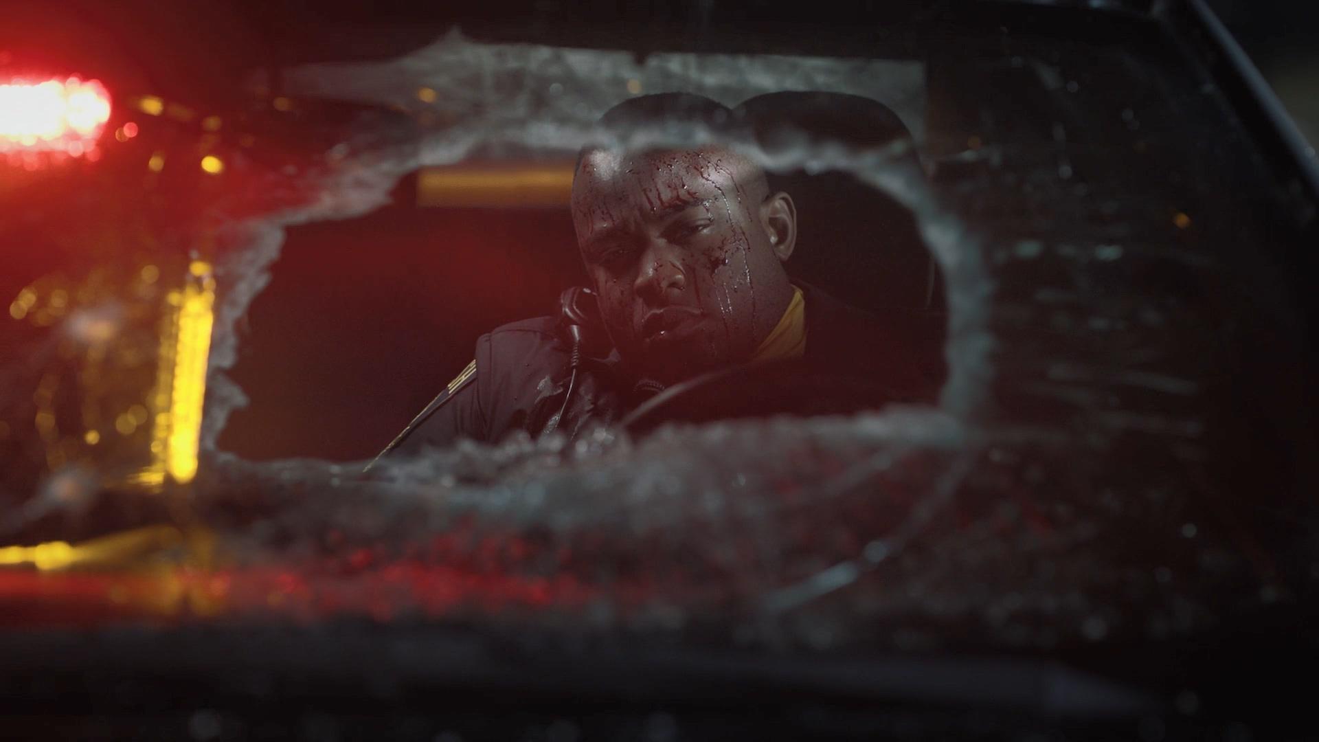 倒霉的警官在一番折腾后终于拔出了配枪,可等待他的确实卡车司机的扫射。