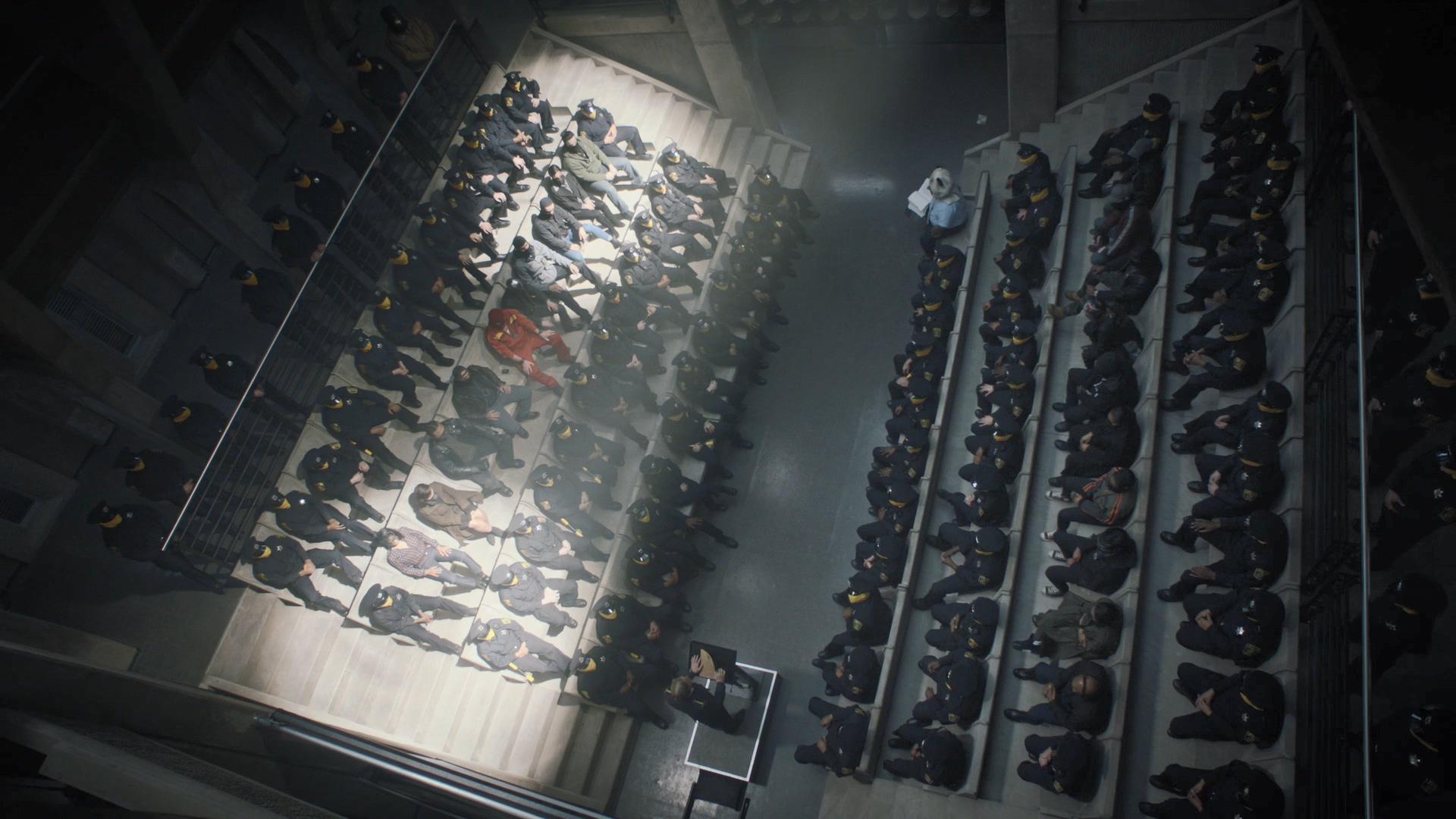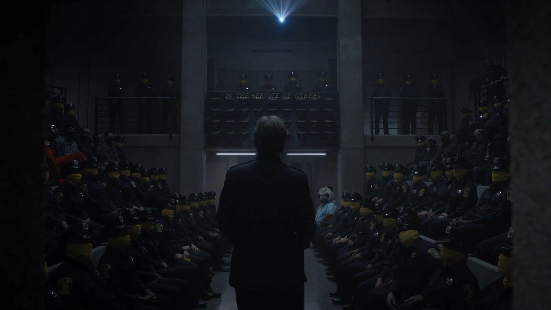 可随后我们才知道,在这个世界里,警察蒙面是保护自己的必须行为,这也解释了为什么剧中的警察都带着黄色的面巾。