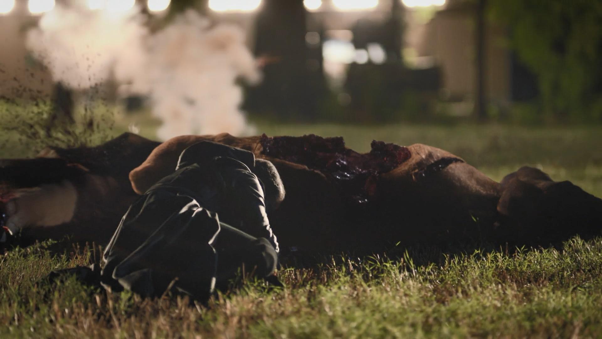 接下来突击骑兵团老巢的情节作为本集唯一的动作戏,气氛和调度都处理的十分出色。
