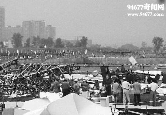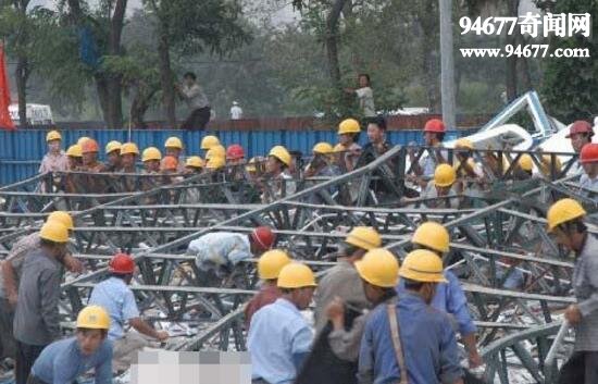 看看娘娘是怎么发怒的吧。报导说,一股旋转的黑色风柱在半空中席卷了整个"水立方"(国家游泳中心)工地,风柱有七、八米高,三、四米粗,旋风卷着黄沙将工地围栏的铁皮卷起十几米高。狂飙把刚刚建好可抗7级风力的临时建筑物几乎全部摧毁,整个建设工地夷为平地,现场陷入瘫痪状态。44名工人受伤,2人死亡。
