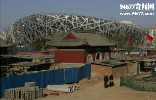 拆强迁,谁敢挡道?尤其是以办奥运的名义,那是毁你没商量。网络上也一度评出史上最牛的张三、李四等钉子户,但最后拖延一阵子后,都难躲厄运。然而,世间也真有名符其实的钉子户,北京市的北顶娘娘庙就是一户。娘娘庙位于朝阳区大屯北顶村,北临"水立方"、东临"鸟巢",是规划之中必须拆除的破落户。据知情者透露,在"鸟巢"最初的设计中,它四周的建筑物必须全部拆迁搬离,用现代化建筑取代!