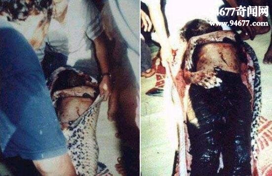 1995年9月4日,时年29岁的华裔青年余兴泉,在橡胶园地疑因不小心踩到饥肠辘辘的巨蟒,招来杀身之祸,被巨蟒吞噬,这条蟒蛇粗大无比,估摸着是条蟒蛇精,不然怎么敢吞人呢。事发当晚9时45分,当时 在丁能警局值勤的警员阿布沙马接到死者兄长的投报,指其弟已遇害,正被巨蟒吞食着。