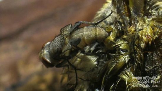 它们吃掉了大部分腐肉。苍蝇的卵在短时间内就能孵化。孵化之后,幼虫便开始在尸体里蠕动,一刻不停地进食腐肉。幼虫只以腐烂的肉类为食,并以此维持7到10天的生长发育。吃罢大餐,它们就会肚皮滚滚,变成蛹。几天之后,它们就会破蛹而出。