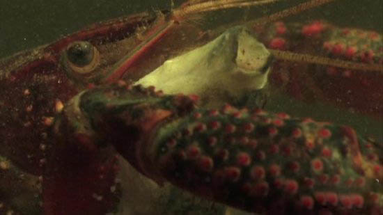 它们就像屠夫一样,装备有合适的工具。它们效率很高,足以和运转良好的机器相媲美。它们装备精良,拥有两对末端长有锋利爪子、大小不同的腹肢,从而能快速肢解鱼体。它们还长有巨大的螯钳,有助于抓拿食物。所有武器同时开动,互相协调,淡水螯虾很快就能将死鱼残骸吃得一点不剩。淡水螯虾能同时用4只腹肢进食,让人联想起传说中贪吃的饕餮。